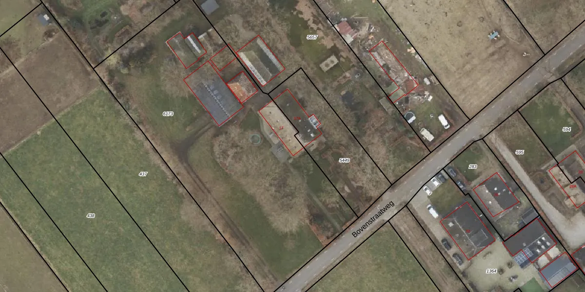 Het perceel waarop Bovenstraatweg 17 staat heeft een oppervlakte van 3965 m². Dit is een zeer groot perceel. De perceeloppervlakte wordt geregistreerd door het Kadaster. Gedetailleerde informatie over de maten van dit perceel kunt u vinden in het rapport Kadastrale kaart met maatvoering van Bovenstraatweg 17.