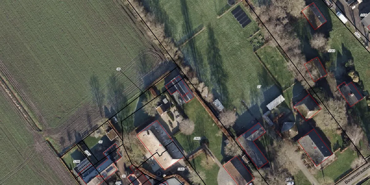 Het perceel waarop Bovenstraatweg 61-M1 staat heeft een oppervlakte van 3050 m². Dit is een zeer groot perceel. De perceeloppervlakte wordt geregistreerd door het Kadaster. Gedetailleerde informatie over de maten van dit perceel kunt u vinden in het rapport Kadastrale kaart met maatvoering van Bovenstraatweg 61-M1.