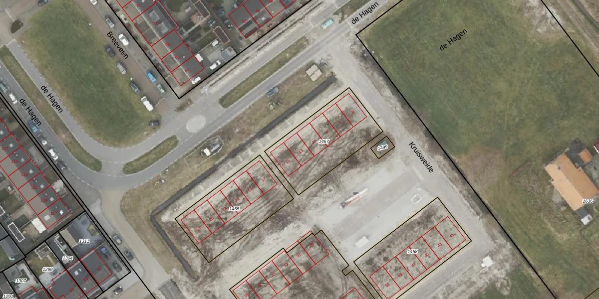 de Hagen 13 is gelegen op kadastraal perceel ODB01AK1467. Deze kadastrale aanduiding is uniek en wordt gebruikt door het Kadaster om eigendomsrechten en andere zakelijke rechten vast te leggen. Het perceel maakt onderdeel uit van de kadastrale gemeente Oldebroek.