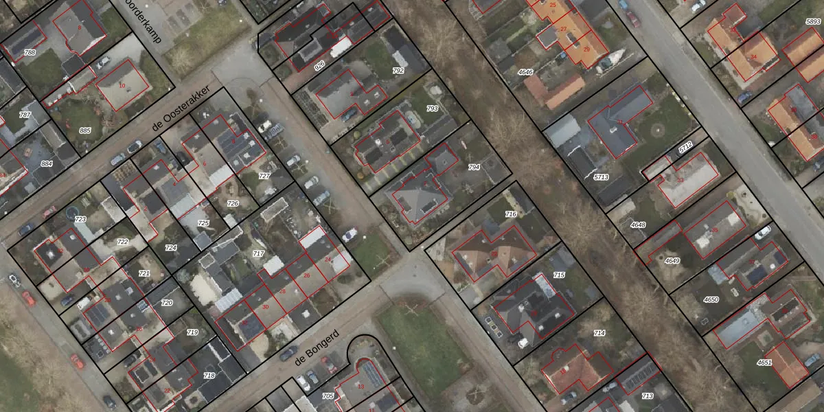 Het perceel waarop de Oosterakker 7 staat heeft een oppervlakte van 518 m². Dit is een groot perceel. De perceeloppervlakte wordt geregistreerd door het Kadaster. Gedetailleerde informatie over de maten van dit perceel kunt u vinden in het rapport Kadastrale kaart met maatvoering van de Oosterakker 7.