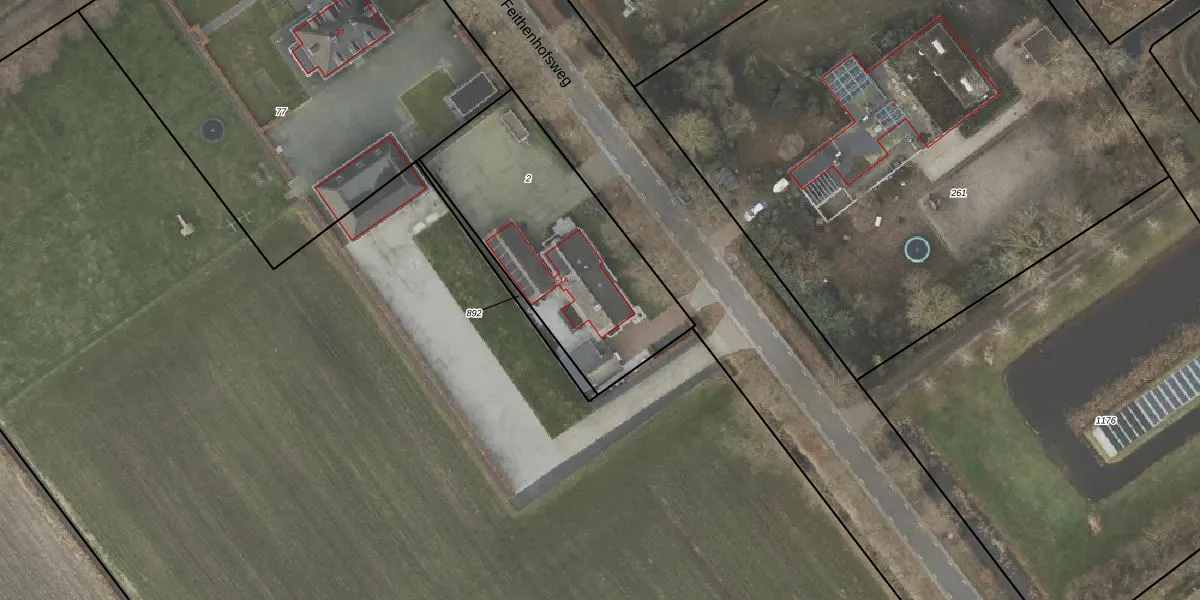 Feithenhofsweg 1 is gelegen op kadastraal perceel ODB01AK2. Deze kadastrale aanduiding is uniek en wordt gebruikt door het Kadaster om eigendomsrechten en andere zakelijke rechten vast te leggen. Het perceel maakt onderdeel uit van de kadastrale gemeente Oldebroek.