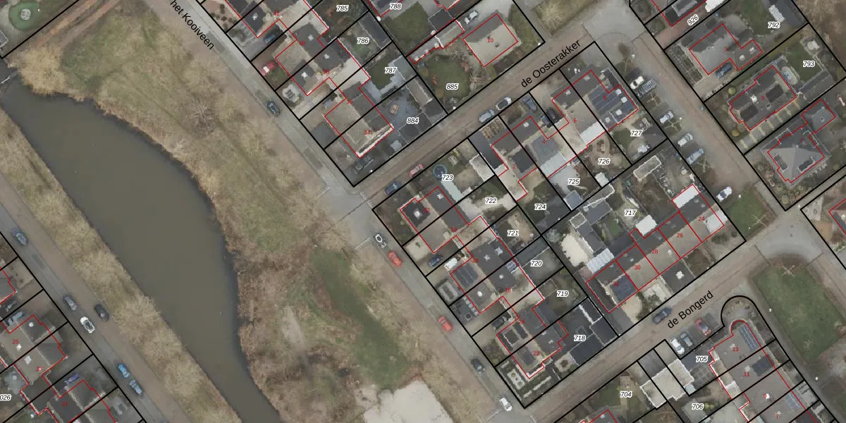 Het perceel waarop het Kooiveen 32 staat heeft een oppervlakte van 307 m². Dit is een groot perceel. De perceeloppervlakte wordt geregistreerd door het Kadaster. Gedetailleerde informatie over de maten van dit perceel kunt u vinden in het rapport Kadastrale kaart met maatvoering van het Kooiveen 32.