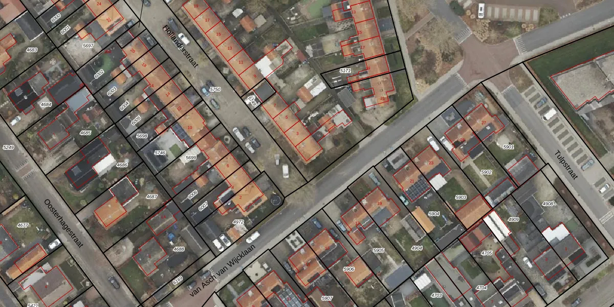 Het perceel waarop Hollanderstraat 1 staat heeft een oppervlakte van 5675 m². Dit is een zeer groot perceel. De perceeloppervlakte wordt geregistreerd door het Kadaster. Gedetailleerde informatie over de maten van dit perceel kunt u vinden in het rapport Kadastrale kaart met maatvoering van Hollanderstraat 1.