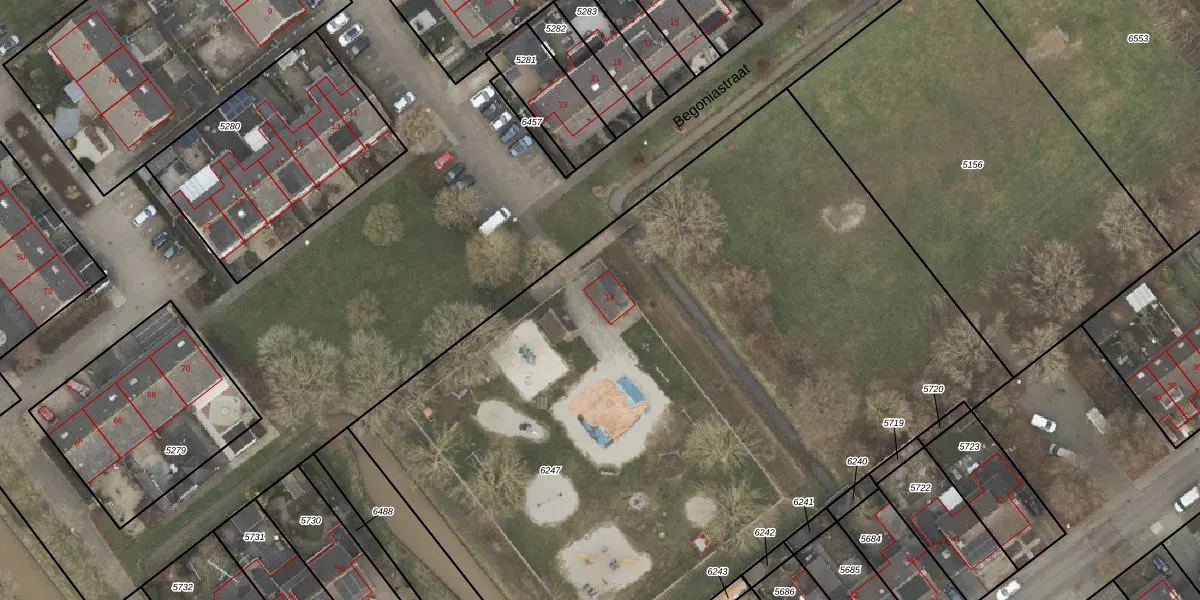 Het perceel waarop Irisstraat 14 staat heeft een oppervlakte van 5480 m². Dit is een zeer groot perceel. De perceeloppervlakte wordt geregistreerd door het Kadaster. Gedetailleerde informatie over de maten van dit perceel kunt u vinden in het rapport Kadastrale kaart met maatvoering van Irisstraat 14.