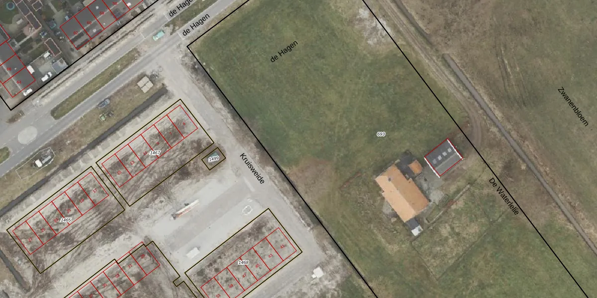 Het perceel waarop het adres ligt is ODB01-AK-693. De afkorting 'ODB01' staat voor kadastrale gemeente Oldebroek. De gemiddelde perceeloppervlakte in de kadastrale gemeente Oldebroek is 5941,41 m². Dit perceel is met zijn 9941 m² dus groter dan gemiddeld. Het kleinste perceel in de kadastrale gemeente is 0 m² groot. De grootste perceeloppervlakte is 4,56 km². Op het perceel zijn 26 adressen aanwezig. In de Basisregistratie Kadaster (BRK) werden de grenzen van het perceel geregistreerd op 20-05-2010.
