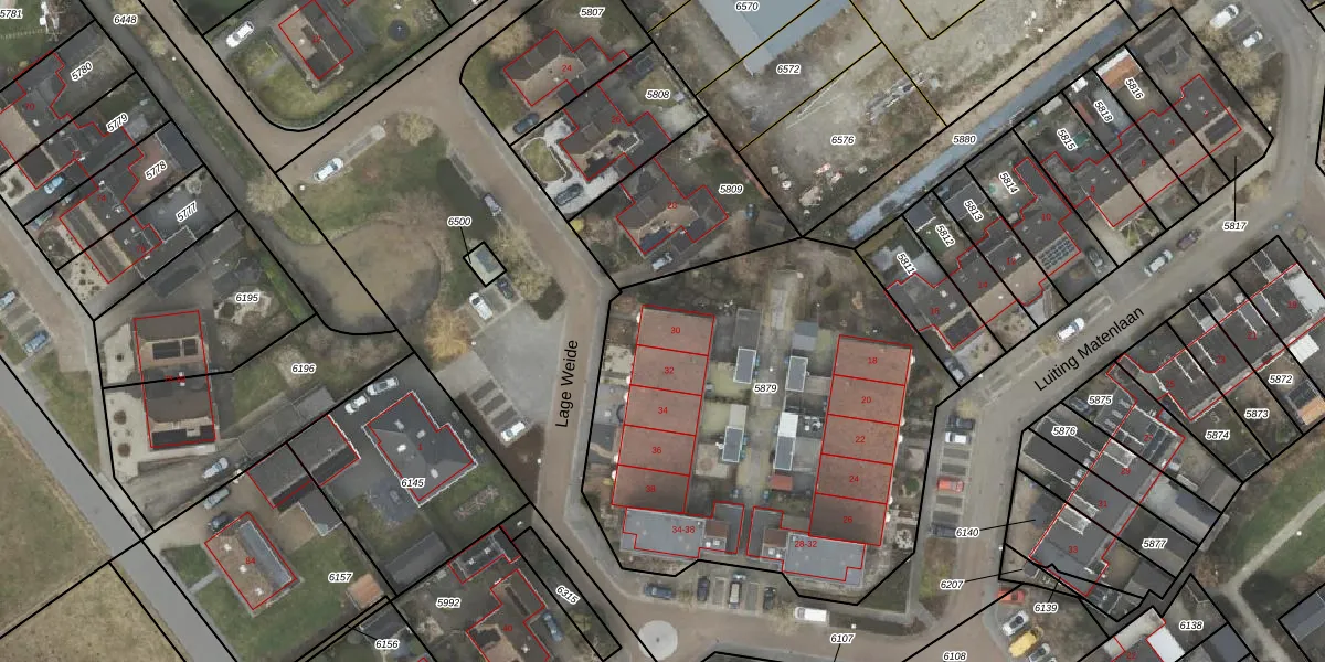 Lage Weide 30 is gelegen op kadastraal perceel ODB01H5879. Deze kadastrale aanduiding is uniek en wordt gebruikt door het Kadaster om eigendomsrechten en andere zakelijke rechten vast te leggen. Het perceel maakt onderdeel uit van de kadastrale gemeente Oldebroek.