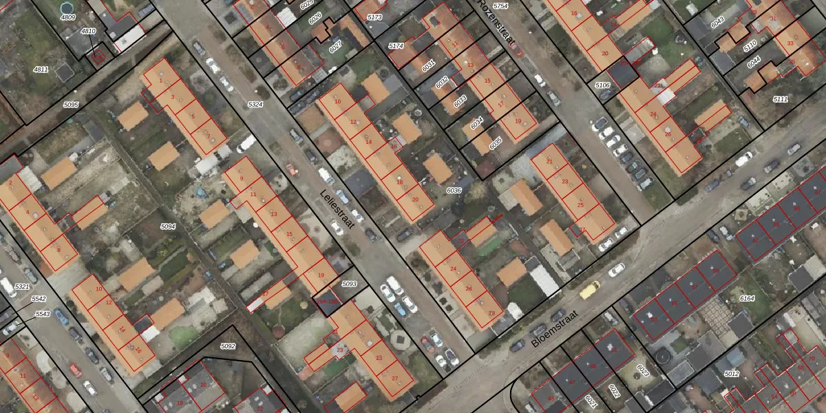 Het perceel waarop Leliestraat 20 staat heeft een oppervlakte van 2773 m². Dit is een zeer groot perceel. De perceeloppervlakte wordt geregistreerd door het Kadaster. Gedetailleerde informatie over de maten van dit perceel kunt u vinden in het rapport Kadastrale kaart met maatvoering van Leliestraat 20.