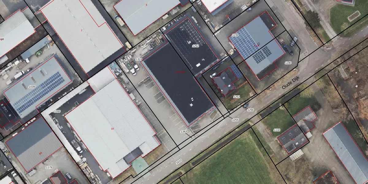 Het perceel waarop Oude Dijk 12-L staat heeft een oppervlakte van 1725 m². Dit is een zeer groot perceel. De perceeloppervlakte wordt geregistreerd door het Kadaster. Gedetailleerde informatie over de maten van dit perceel kunt u vinden in het rapport Kadastrale kaart met maatvoering van Oude Dijk 12-L.
