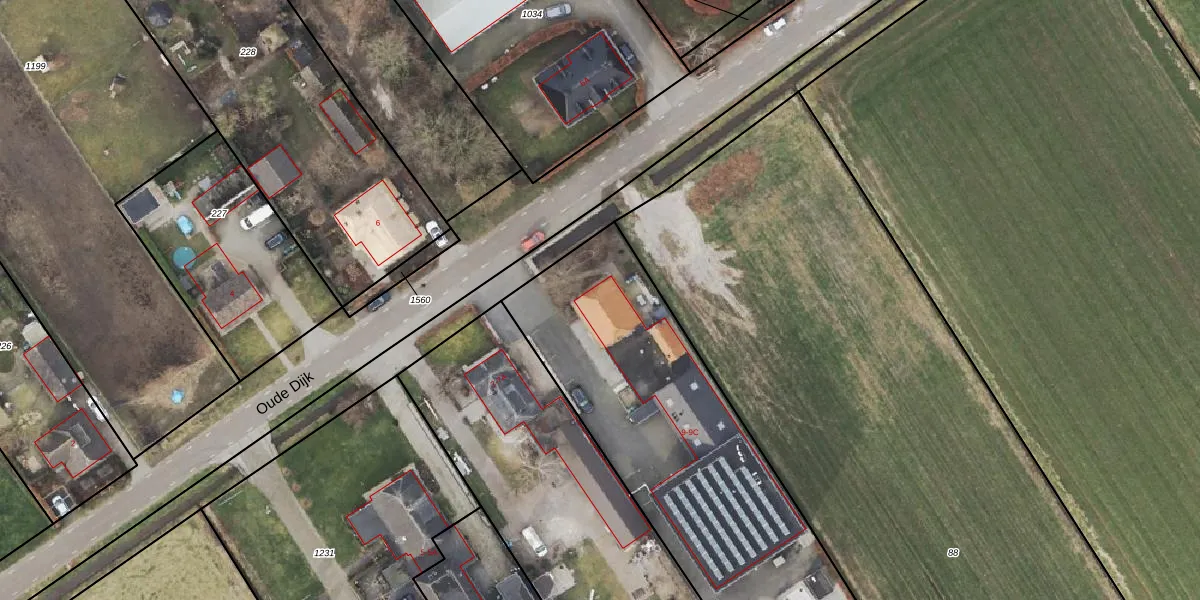 Oude Dijk 9 is gelegen op kadastraal perceel ODB01AG90. Deze kadastrale aanduiding is uniek en wordt gebruikt door het Kadaster om eigendomsrechten en andere zakelijke rechten vast te leggen. Het perceel maakt onderdeel uit van de kadastrale gemeente Oldebroek.