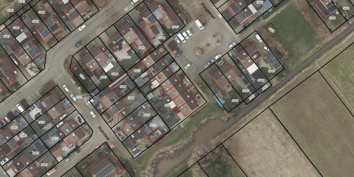 Het perceel waarop Pimpernel 10 staat heeft een oppervlakte van 636 m². Dit is een groot perceel. De perceeloppervlakte wordt geregistreerd door het Kadaster. Gedetailleerde informatie over de maten van dit perceel kunt u vinden in het rapport Kadastrale kaart met maatvoering van Pimpernel 10.