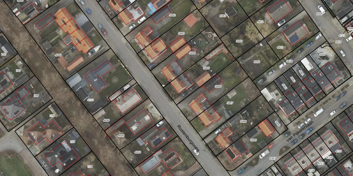 Het perceel waarop Rustenburgsweg 38 staat heeft een oppervlakte van 523 m². Dit is een groot perceel. De perceeloppervlakte wordt geregistreerd door het Kadaster. Gedetailleerde informatie over de maten van dit perceel kunt u vinden in het rapport Kadastrale kaart met maatvoering van Rustenburgsweg 38.