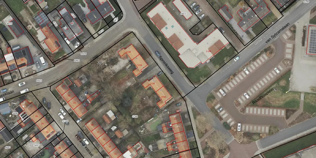 Het perceel waarop Spronksweg 3-C staat heeft een oppervlakte van 5675 m². Dit is een zeer groot perceel. De perceeloppervlakte wordt geregistreerd door het Kadaster. Gedetailleerde informatie over de maten van dit perceel kunt u vinden in het rapport Kadastrale kaart met maatvoering van Spronksweg 3-C.