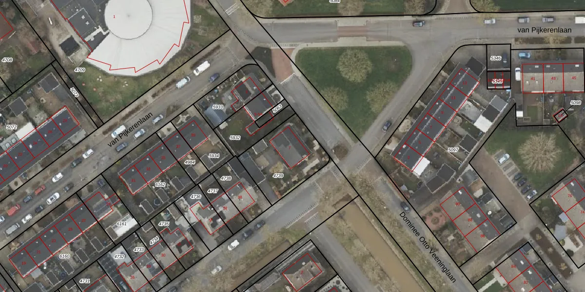 Gebruik de zoekbalk of klik op een perceel voor informatie over de adressen binnen dit perceel.