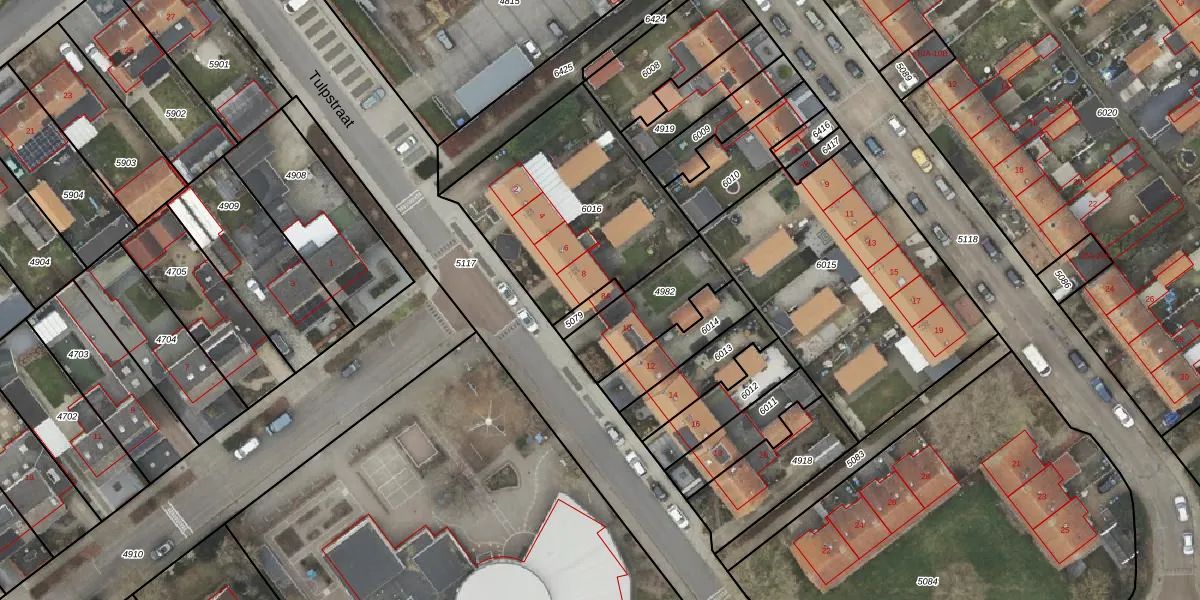 Het perceel waarop Tulpstraat 8-A staat heeft een oppervlakte van 38 m². Dit is een klein perceel. De perceeloppervlakte wordt geregistreerd door het Kadaster. Gedetailleerde informatie over de maten van dit perceel kunt u vinden in het rapport Kadastrale kaart met maatvoering van Tulpstraat 8-A.