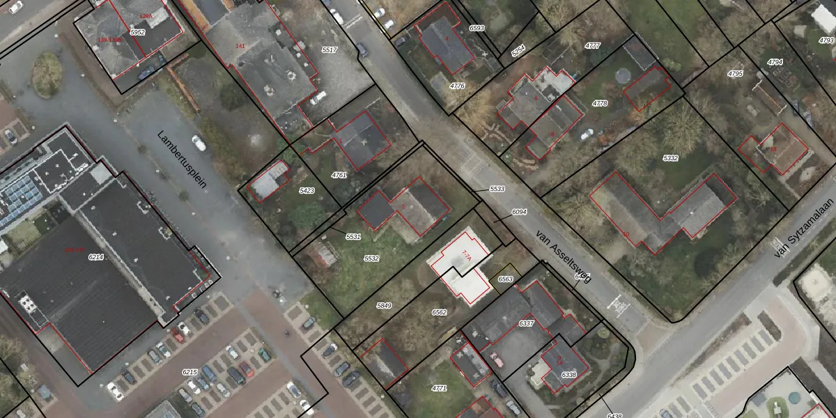 Het perceel waarop van Asseltsweg 3-A staat heeft een oppervlakte van 817 m². Dit is een groot perceel. De perceeloppervlakte wordt geregistreerd door het Kadaster. Gedetailleerde informatie over de maten van dit perceel kunt u vinden in het rapport Kadastrale kaart met maatvoering van van Asseltsweg 3-A.