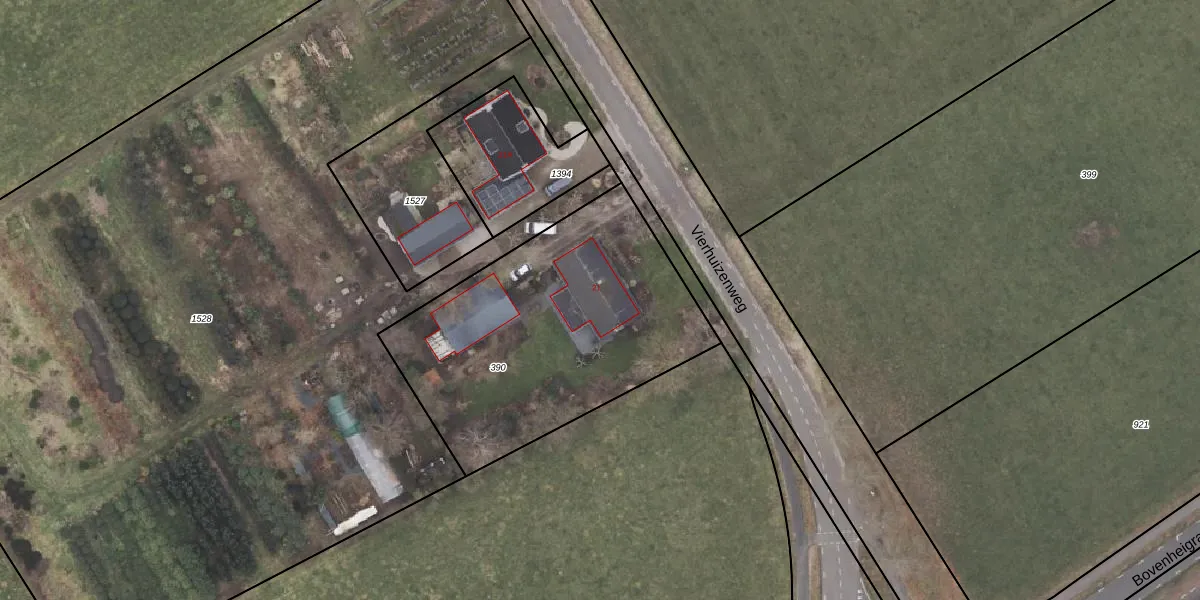 Vierhuizenweg 21 is gelegen op kadastraal perceel ODB01AG390. Deze kadastrale aanduiding is uniek en wordt gebruikt door het Kadaster om eigendomsrechten en andere zakelijke rechten vast te leggen. Het perceel maakt onderdeel uit van de kadastrale gemeente Oldebroek.