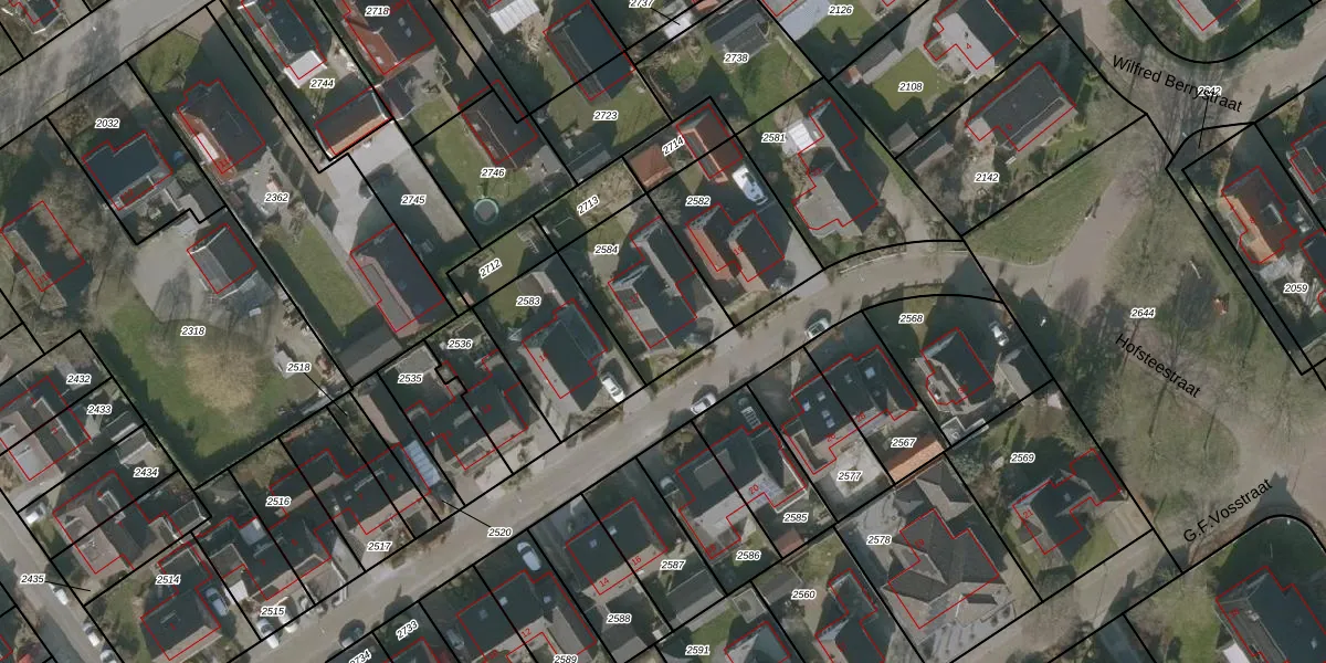 Gebruik de zoekbalk of klik op een perceel voor informatie over de adressen binnen dit perceel.