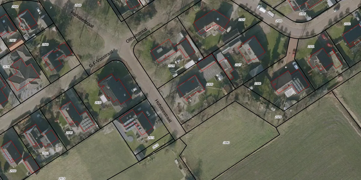 Hofsteestraat 33 is gelegen op kadastraal perceel WVG00E2326. Deze kadastrale aanduiding is uniek en wordt gebruikt door het Kadaster om eigendomsrechten en andere zakelijke rechten vast te leggen. Het perceel maakt onderdeel uit van de kadastrale gemeente Wolvega.