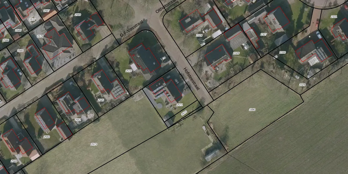 Hofsteestraat 40 is gelegen op kadastraal perceel WVG00E2571. Deze kadastrale aanduiding is uniek en wordt gebruikt door het Kadaster om eigendomsrechten en andere zakelijke rechten vast te leggen. Het perceel maakt onderdeel uit van de kadastrale gemeente Wolvega.