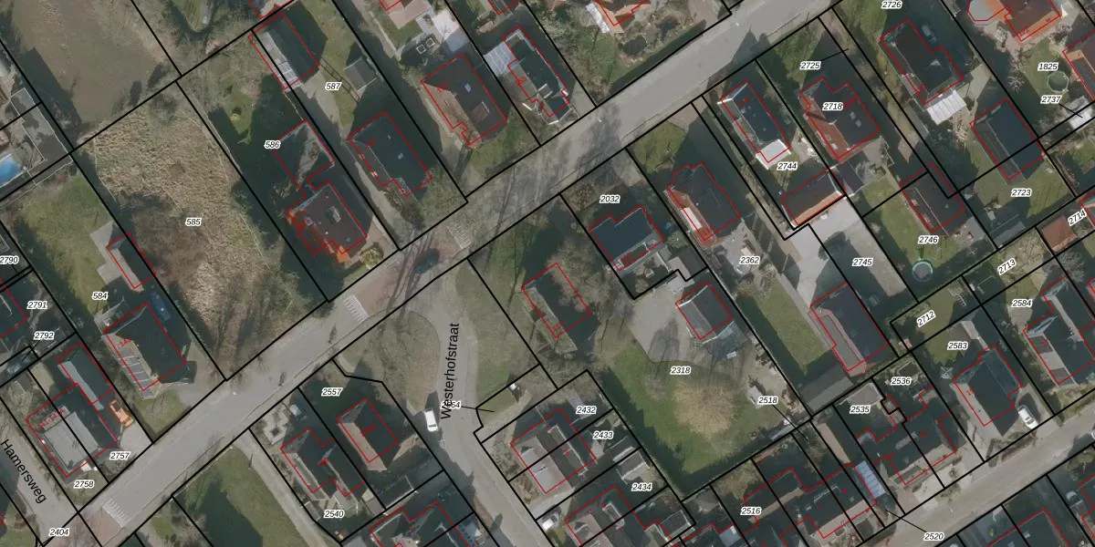Gebruik de zoekbalk of klik op een perceel voor informatie over de adressen binnen dit perceel.