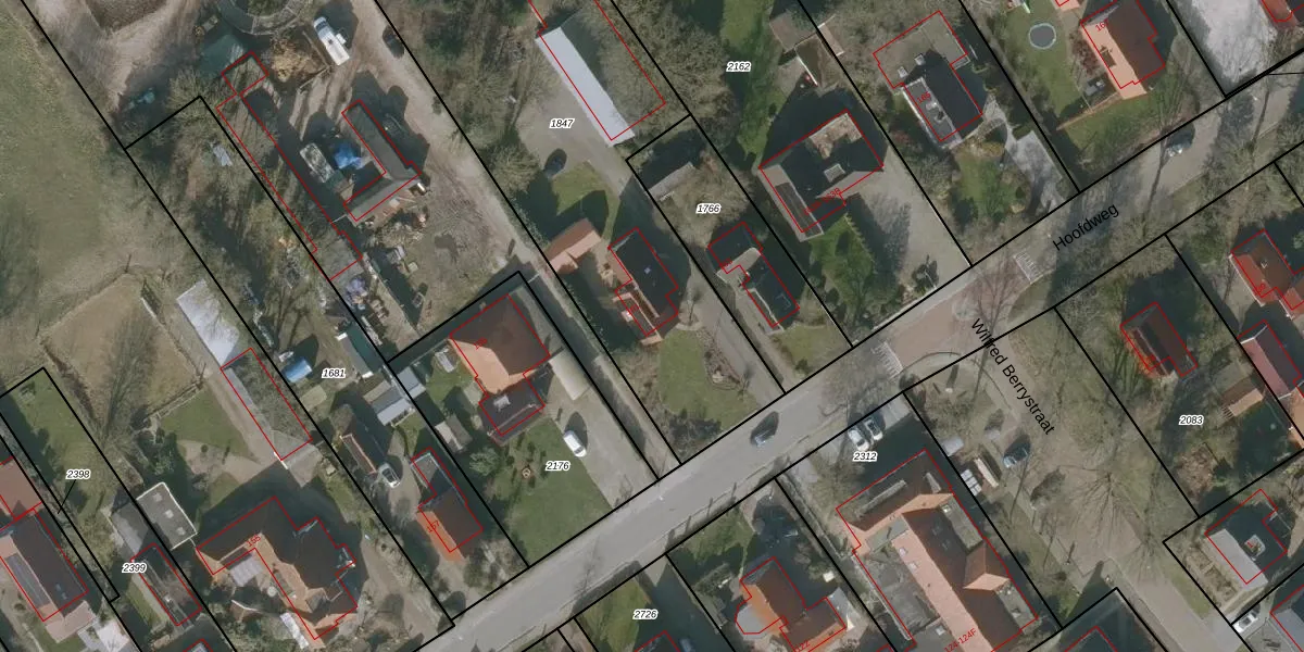 Het perceel waarop Hoofdweg 161 staat heeft een oppervlakte van 2168 m². Dit is een zeer groot perceel. De perceeloppervlakte wordt geregistreerd door het Kadaster. Gedetailleerde informatie over de maten van dit perceel kunt u vinden in het rapport Kadastrale kaart met maatvoering van Hoofdweg 161.