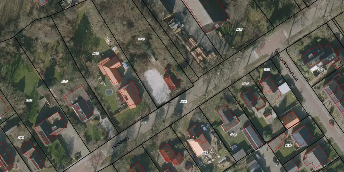 Het perceel waarop Hoofdweg 169 staat heeft een oppervlakte van 1612 m². Dit is een zeer groot perceel. De perceeloppervlakte wordt geregistreerd door het Kadaster. Gedetailleerde informatie over de maten van dit perceel kunt u vinden in het rapport Kadastrale kaart met maatvoering van Hoofdweg 169.