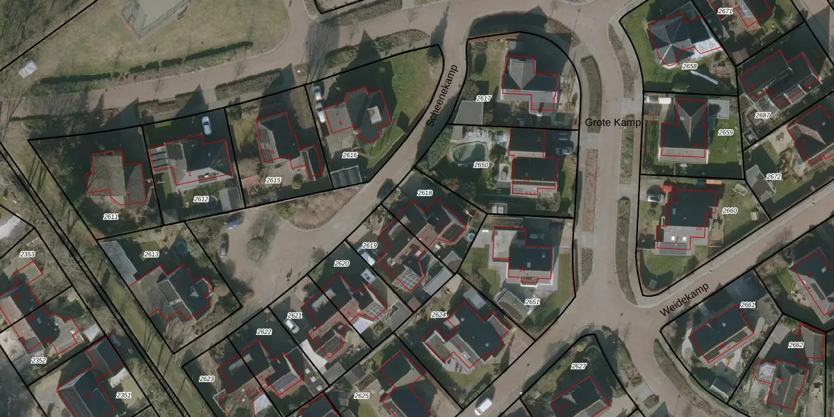 Het perceel waarop Scheenekamp 1 staat heeft een oppervlakte van 318 m². Dit is een groot perceel. De perceeloppervlakte wordt geregistreerd door het Kadaster. Gedetailleerde informatie over de maten van dit perceel kunt u vinden in het rapport Kadastrale kaart met maatvoering van Scheenekamp 1.