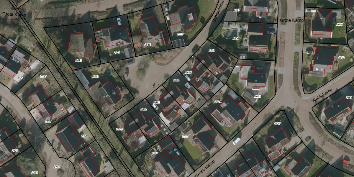 Gebruik de zoekbalk of klik op een perceel voor informatie over de adressen binnen dit perceel.