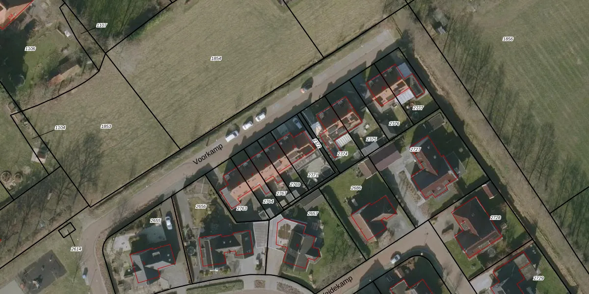Het perceel waarop Voorkamp 10 staat heeft een oppervlakte van 257 m². Dit is een middelgroot perceel. De perceeloppervlakte wordt geregistreerd door het Kadaster. Gedetailleerde informatie over de maten van dit perceel kunt u vinden in het rapport Kadastrale kaart met maatvoering van Voorkamp 10.