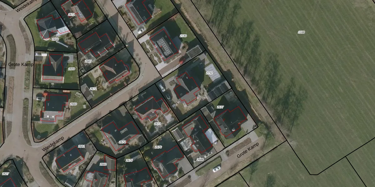 Gebruik de zoekbalk of klik op een perceel voor informatie over de adressen binnen dit perceel.