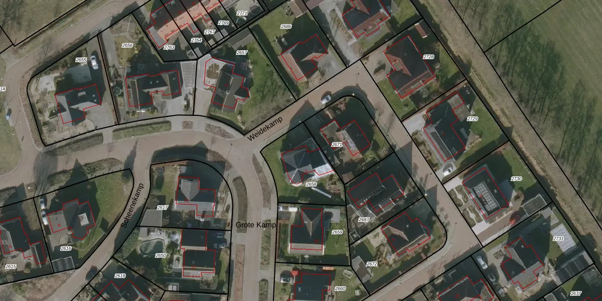 Het perceel waarop Weidekamp 2 staat heeft een oppervlakte van 487 m². Dit is een groot perceel. De perceeloppervlakte wordt geregistreerd door het Kadaster. Gedetailleerde informatie over de maten van dit perceel kunt u vinden in het rapport Kadastrale kaart met maatvoering van Weidekamp 2.