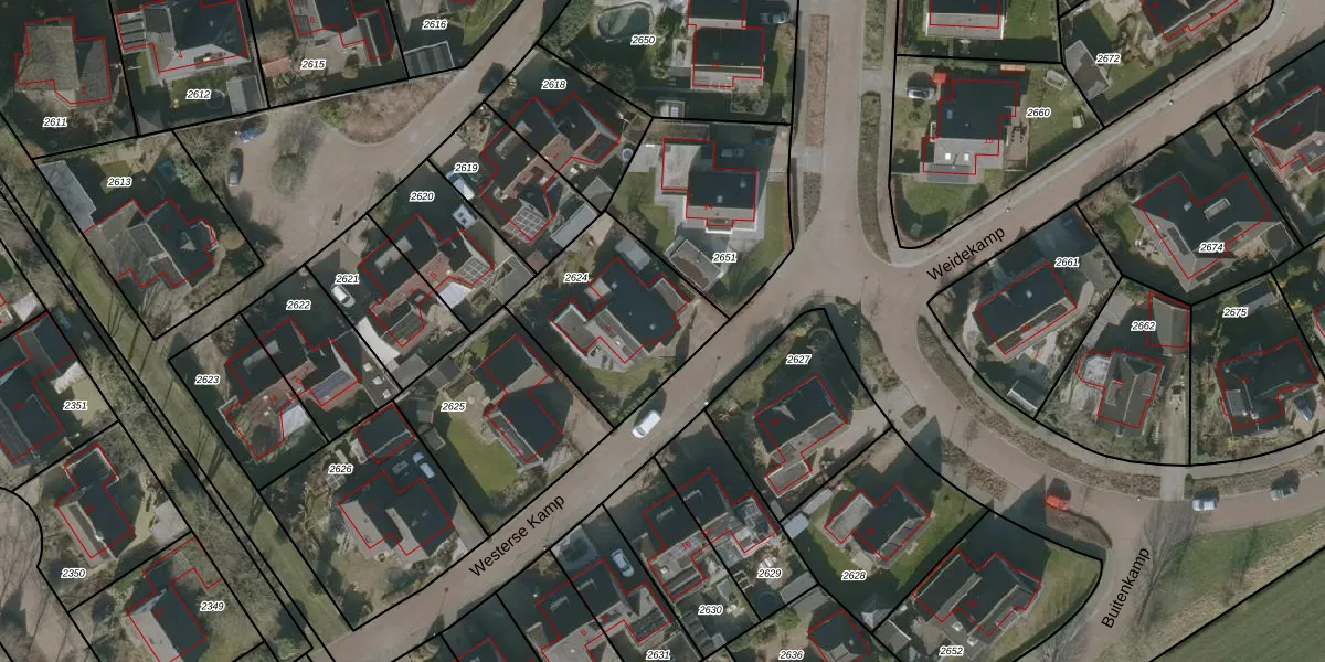 Het perceel waarop Westerse Kamp 5 staat heeft een oppervlakte van 563 m². Dit is een groot perceel. De perceeloppervlakte wordt geregistreerd door het Kadaster. Gedetailleerde informatie over de maten van dit perceel kunt u vinden in het rapport Kadastrale kaart met maatvoering van Westerse Kamp 5.