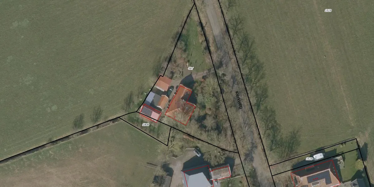 Het perceel waarop Kerkweg 5 staat heeft een oppervlakte van 1890 m². Dit is een zeer groot perceel. De perceeloppervlakte wordt geregistreerd door het Kadaster. Gedetailleerde informatie over de maten van dit perceel kunt u vinden in het rapport Kadastrale kaart met maatvoering van Kerkweg 5.