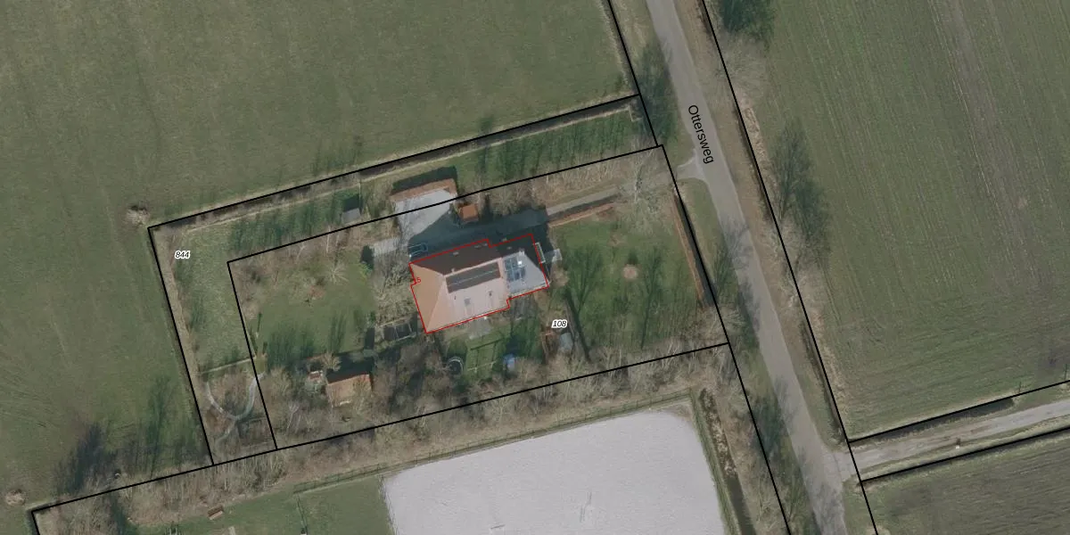 Het perceel waarop Ottersweg 15 staat heeft een oppervlakte van 3240 m². Dit is een zeer groot perceel. De perceeloppervlakte wordt geregistreerd door het Kadaster. Gedetailleerde informatie over de maten van dit perceel kunt u vinden in het rapport Kadastrale kaart met maatvoering van Ottersweg 15.