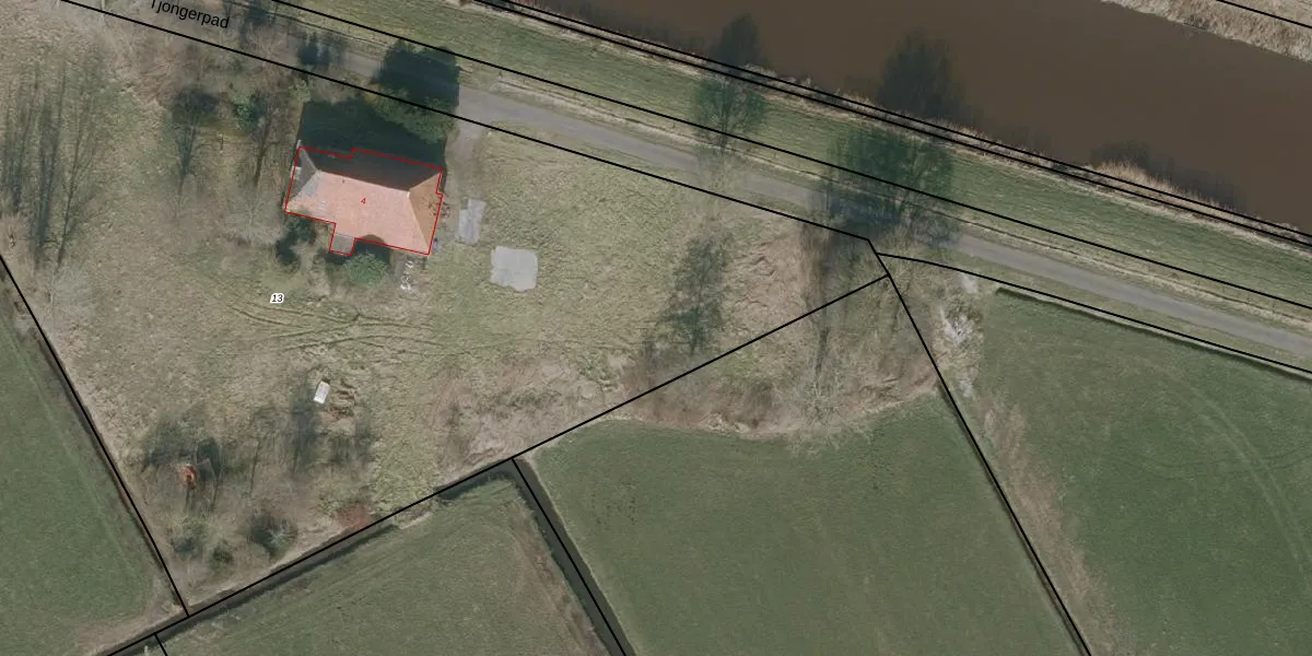 Tjongerpad 12-F is gelegen op kadastraal perceel WVG00K13. Deze kadastrale aanduiding is uniek en wordt gebruikt door het Kadaster om eigendomsrechten en andere zakelijke rechten vast te leggen. Het perceel maakt onderdeel uit van de kadastrale gemeente Wolvega.