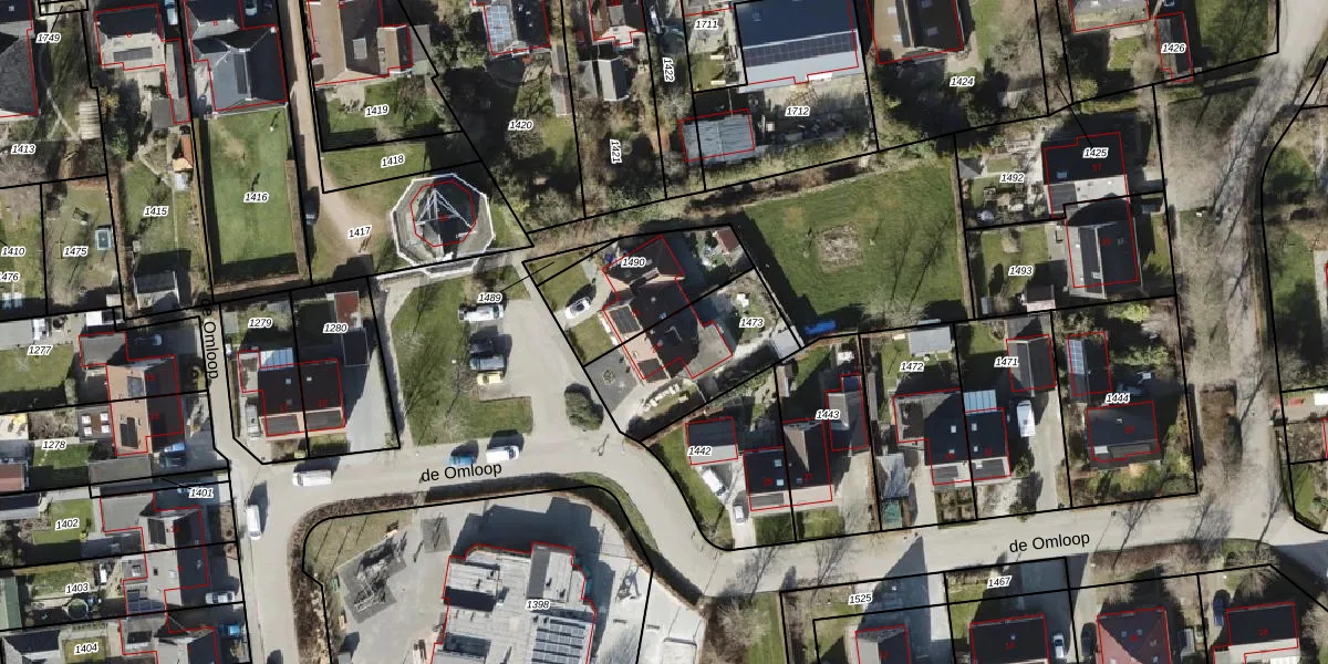 Het perceel waarop de Omloop 23 staat heeft een oppervlakte van 420 m². Dit is een groot perceel. De perceeloppervlakte wordt geregistreerd door het Kadaster. Gedetailleerde informatie over de maten van dit perceel kunt u vinden in het rapport Kadastrale kaart met maatvoering van de Omloop 23.