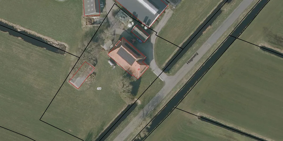Hogeweg 38 is gelegen op kadastraal perceel ODT00F254. Deze kadastrale aanduiding is uniek en wordt gebruikt door het Kadaster om eigendomsrechten en andere zakelijke rechten vast te leggen. Het perceel maakt onderdeel uit van de kadastrale gemeente Oudetrijne.