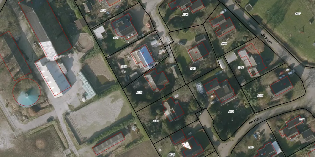 Het perceel waarop de Hare 13 staat heeft een oppervlakte van 735 m². Dit is een groot perceel. De perceeloppervlakte wordt geregistreerd door het Kadaster. Gedetailleerde informatie over de maten van dit perceel kunt u vinden in het rapport Kadastrale kaart met maatvoering van de Hare 13.