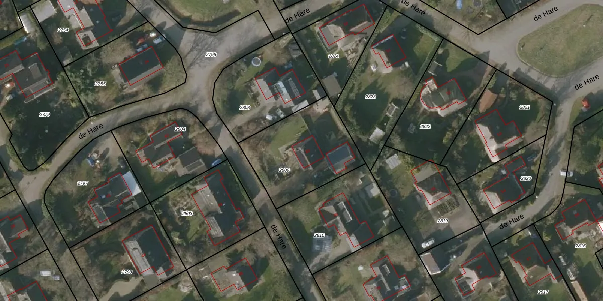Het perceel waarop de Hare 40 staat heeft een oppervlakte van 850 m². Dit is een groot perceel. De perceeloppervlakte wordt geregistreerd door het Kadaster. Gedetailleerde informatie over de maten van dit perceel kunt u vinden in het rapport Kadastrale kaart met maatvoering van de Hare 40.