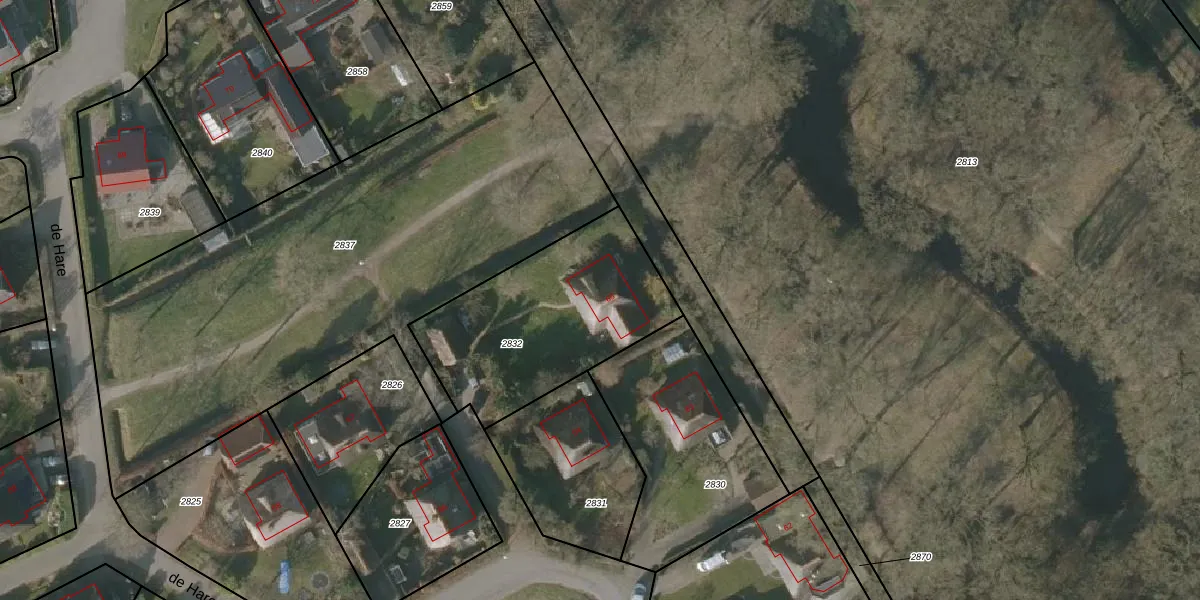 Het perceel waarop de Hare 65 staat heeft een oppervlakte van 855 m². Dit is een groot perceel. De perceeloppervlakte wordt geregistreerd door het Kadaster. Gedetailleerde informatie over de maten van dit perceel kunt u vinden in het rapport Kadastrale kaart met maatvoering van de Hare 65.