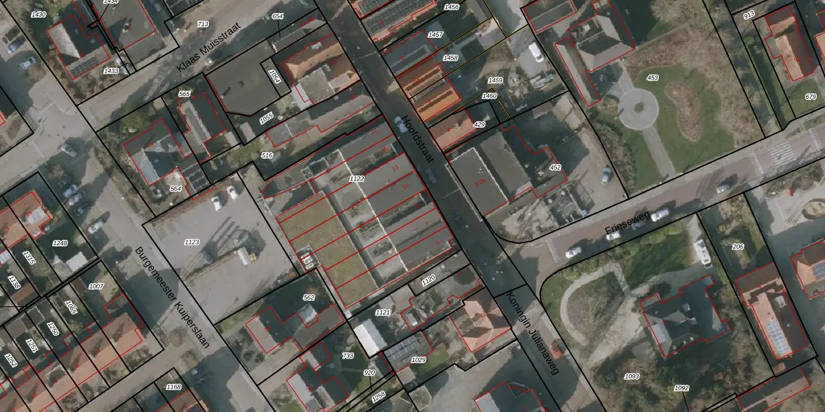 Hoofdstraat 9 is gelegen op kadastraal perceel ODM02H1122. Deze kadastrale aanduiding is uniek en wordt gebruikt door het Kadaster om eigendomsrechten en andere zakelijke rechten vast te leggen. Het perceel maakt onderdeel uit van de kadastrale gemeente Oldemarkt.