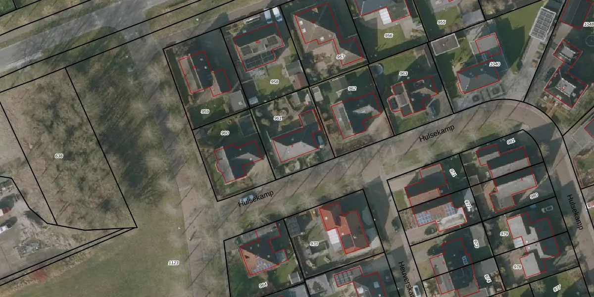 Het perceel waarop Hulsekamp 3 staat heeft een oppervlakte van 545 m². Dit is een groot perceel. De perceeloppervlakte wordt geregistreerd door het Kadaster. Gedetailleerde informatie over de maten van dit perceel kunt u vinden in het rapport Kadastrale kaart met maatvoering van Hulsekamp 3.