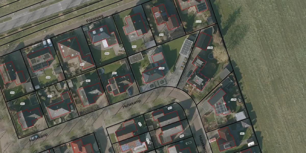 Het perceel waarop Hulsekamp 9 staat heeft een oppervlakte van 1042 m². Dit is een zeer groot perceel. De perceeloppervlakte wordt geregistreerd door het Kadaster. Gedetailleerde informatie over de maten van dit perceel kunt u vinden in het rapport Kadastrale kaart met maatvoering van Hulsekamp 9.