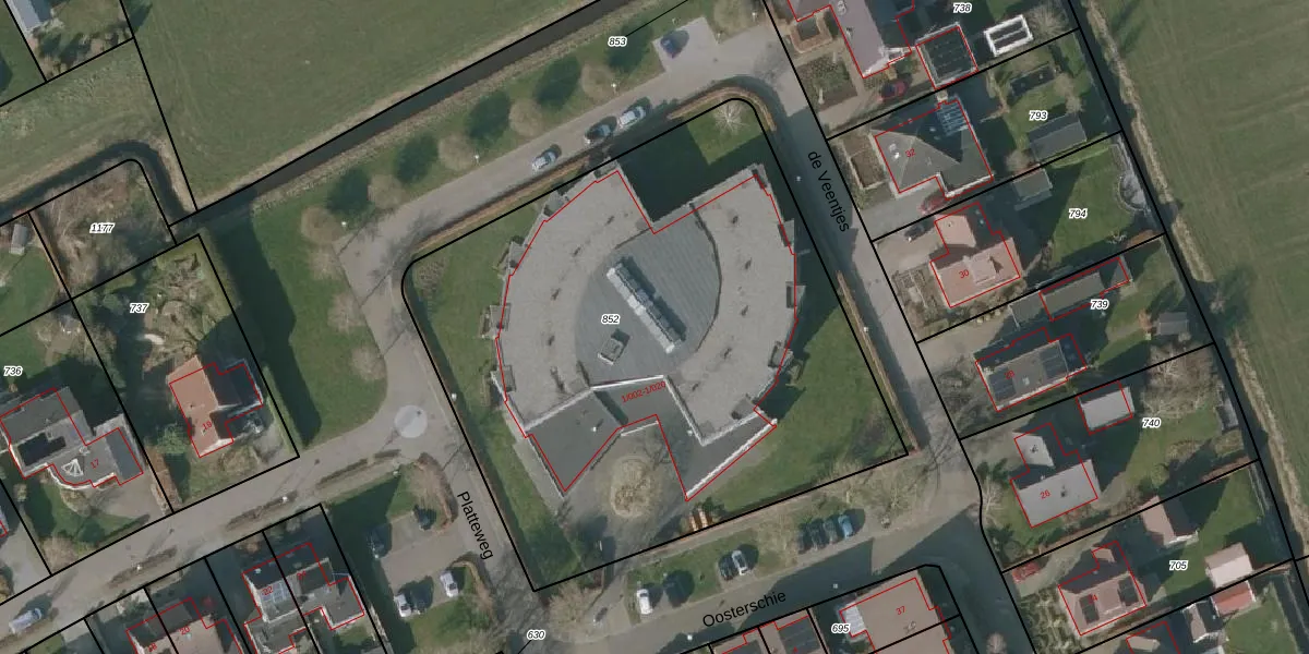 Het perceel waarop Oosterschie 1-018 staat heeft een oppervlakte van 3455 m². Dit is een zeer groot perceel. De perceeloppervlakte wordt geregistreerd door het Kadaster. Gedetailleerde informatie over de maten van dit perceel kunt u vinden in het rapport Kadastrale kaart met maatvoering van Oosterschie 1-018.