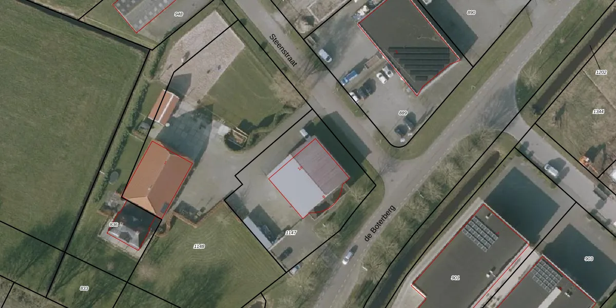 Het perceel waarop Steenstraat 1-a staat heeft een oppervlakte van 1380 m². Dit is een zeer groot perceel. De perceeloppervlakte wordt geregistreerd door het Kadaster. Gedetailleerde informatie over de maten van dit perceel kunt u vinden in het rapport Kadastrale kaart met maatvoering van Steenstraat 1-a.