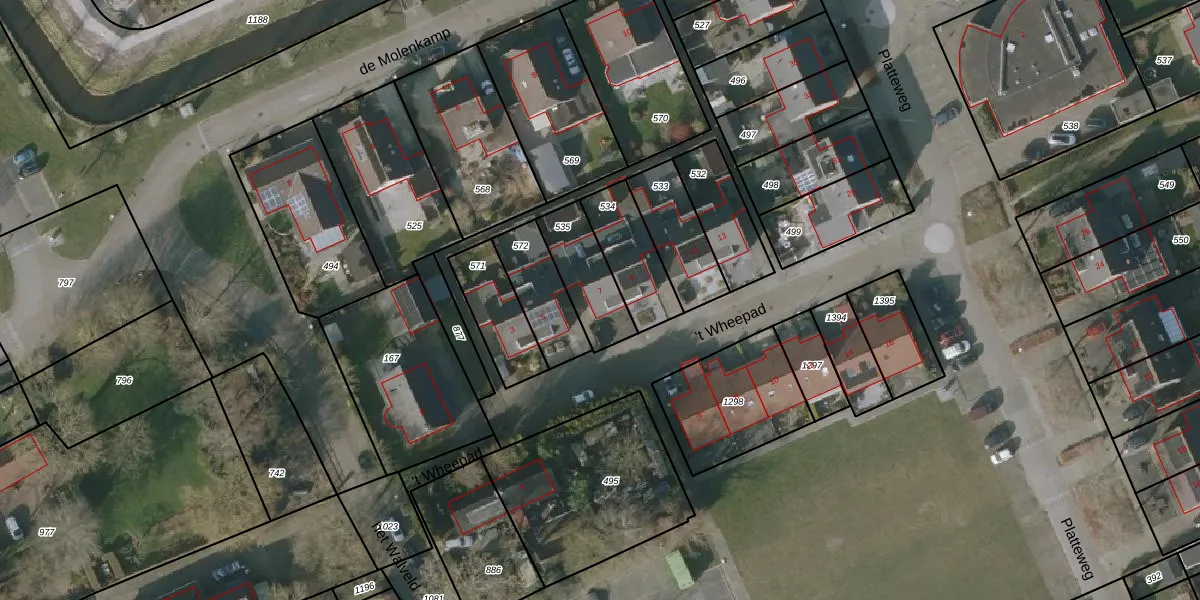 Gebruik de zoekbalk of klik op een perceel voor informatie over de adressen binnen dit perceel.