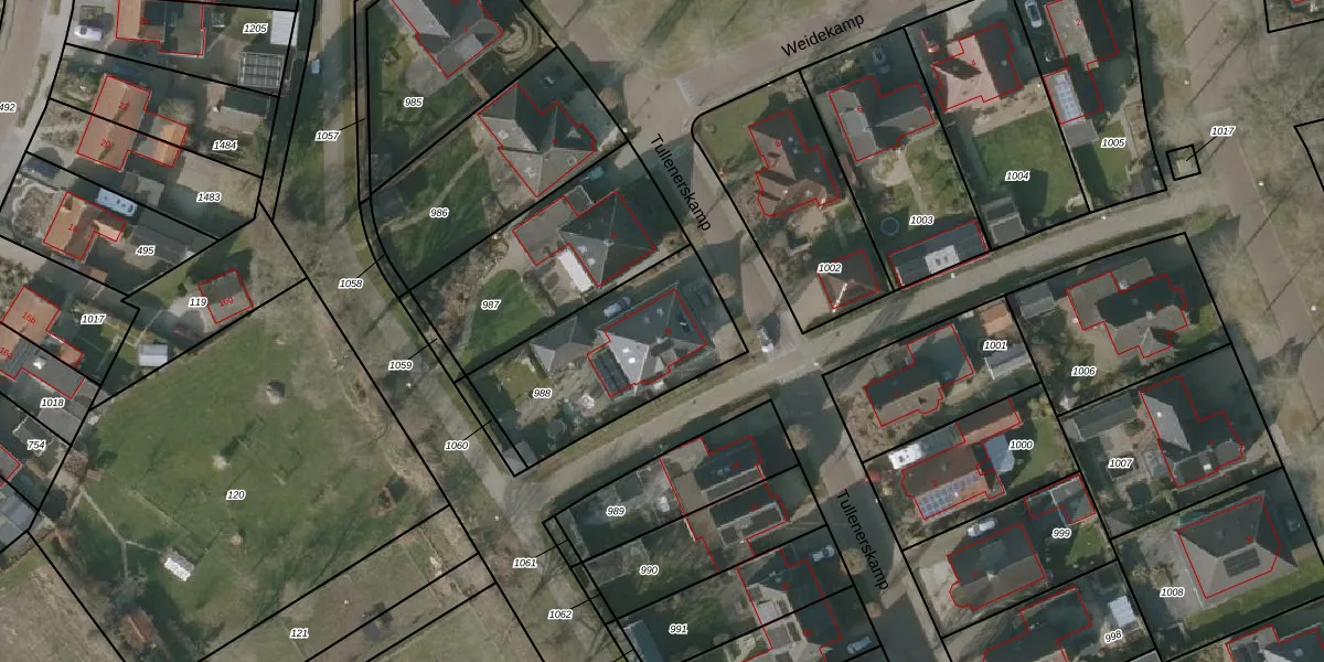 Het perceel waarop Tullenerskamp 8 staat heeft een oppervlakte van 670 m². Dit is een groot perceel. De perceeloppervlakte wordt geregistreerd door het Kadaster. Gedetailleerde informatie over de maten van dit perceel kunt u vinden in het rapport Kadastrale kaart met maatvoering van Tullenerskamp 8.