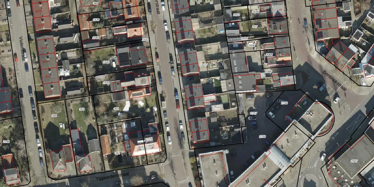 Het perceel waarop Asterstraat 20 staat heeft een oppervlakte van 2537 m². Dit is een zeer groot perceel. De perceeloppervlakte wordt geregistreerd door het Kadaster. Gedetailleerde informatie over de maten van dit perceel kunt u vinden in het rapport Kadastrale kaart met maatvoering van Asterstraat 20.