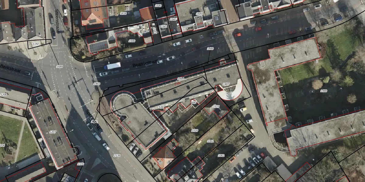 Het perceel waarop Beatrixstraat 2-b staat heeft een oppervlakte van 632 m². Dit is een groot perceel. De perceeloppervlakte wordt geregistreerd door het Kadaster. Gedetailleerde informatie over de maten van dit perceel kunt u vinden in het rapport Kadastrale kaart met maatvoering van Beatrixstraat 2-b.
