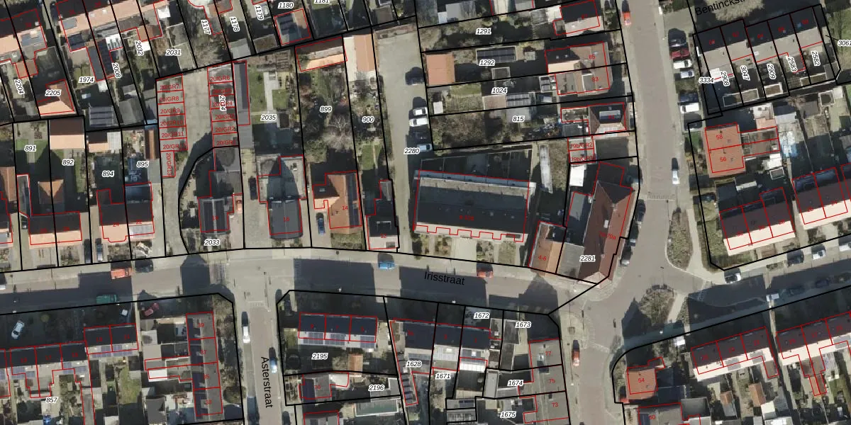 Het perceel waarop Irisstraat 8-d staat heeft een oppervlakte van 1560 m². Dit is een zeer groot perceel. De perceeloppervlakte wordt geregistreerd door het Kadaster. Gedetailleerde informatie over de maten van dit perceel kunt u vinden in het rapport Kadastrale kaart met maatvoering van Irisstraat 8-d.